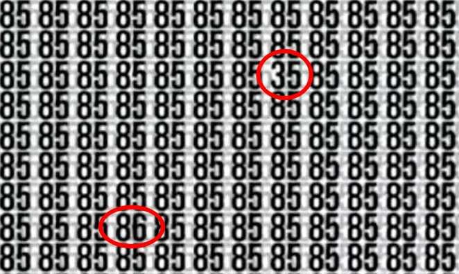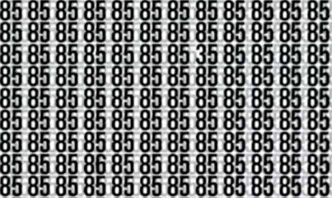 В следващата загадка трябва да откриете две скрити числа – 86 и 35 – сред голям брой числа 85, пише jagranjosh. Няма да е лесно да забележите къде са скрити числата, които са различни от всички останали.