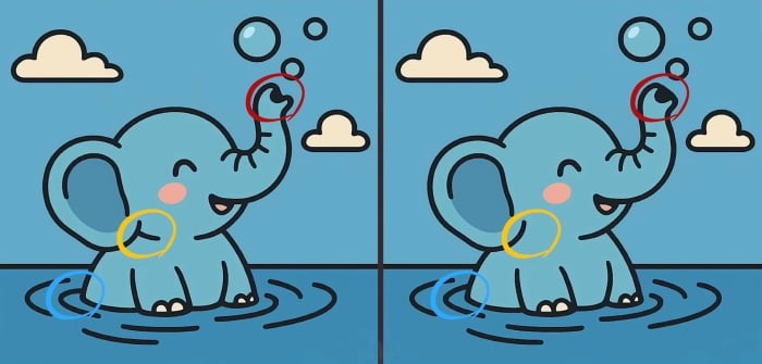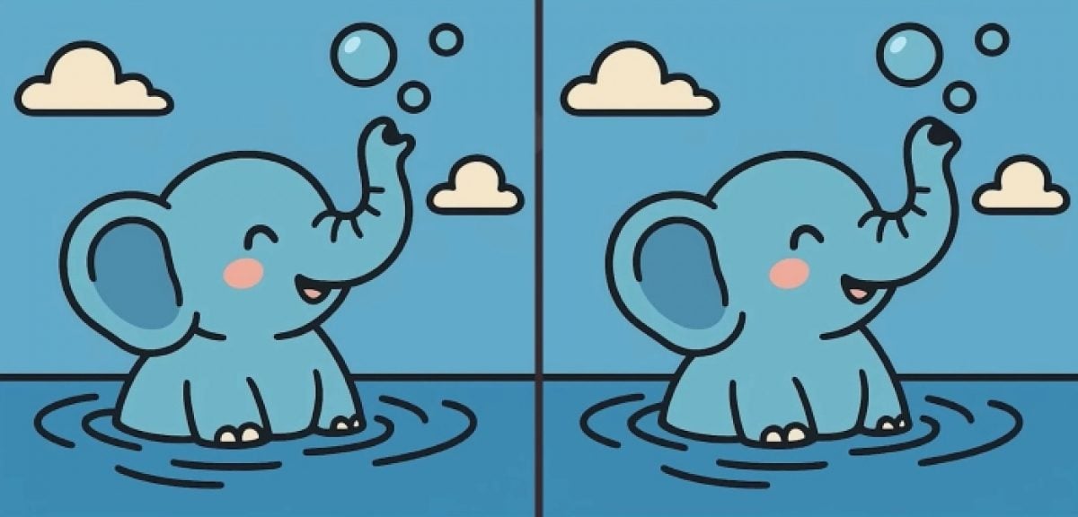 Пред вас има две снимки на слон, който си играе във вода. На пръв поглед те изглеждат абсолютно еднакви, но това е само илюзия. В изображенията са скрити три малки разлики.