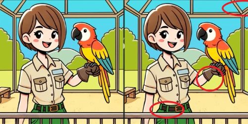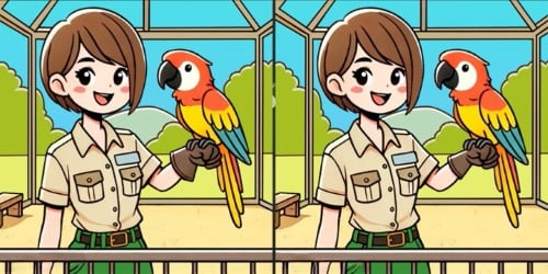Изображенията са на момиче и папагал. На пръв поглед снимките изглеждат идентични, но в тях се крият три разлики. Вашата задача е да ги откриете само за 17 секунди.