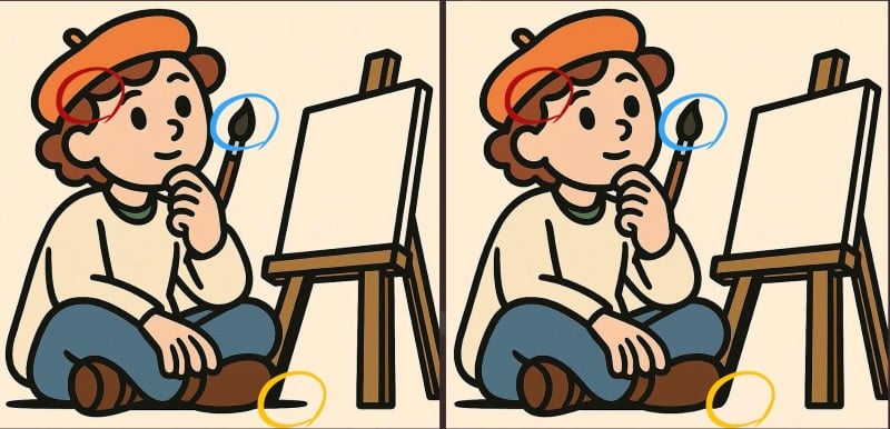 Готови ли сте да изпробвате способностите си за наблюдение? Разгледайте две снимки на художник, който седи пред платно. На пръв поглед може да ви се стори, че картините са напълно идентични, но между тях има три малки разлики.