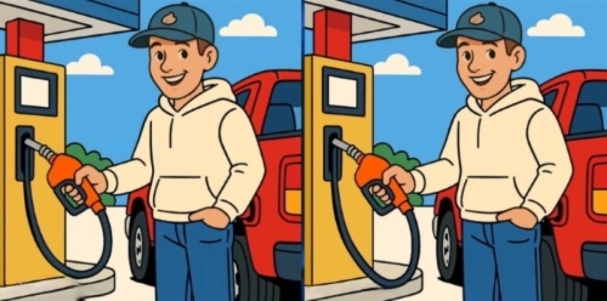Разгледайте внимателно две изображения на мъж, който зарежда автомобил с бензин. На пръв поглед може да ви се стори, че снимките са абсолютно еднакви, но всъщност между тях има три малки разлики.
