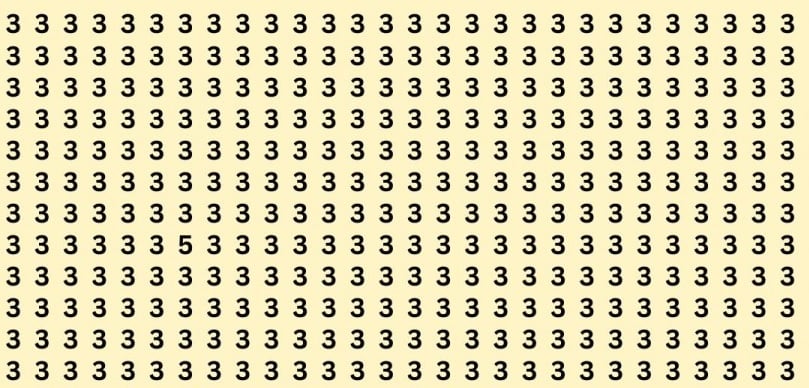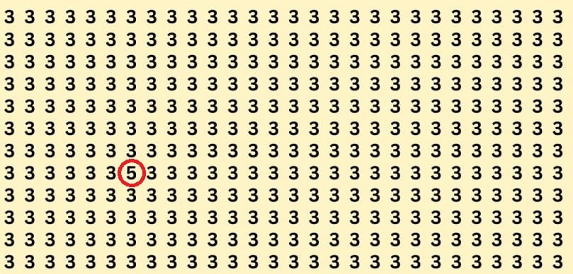 Ако не можете да откриете числото 5 сред тройките, даваме ви малка подсказка – обърнете внимание на седмата колона вляво близо до средата по вертикала.